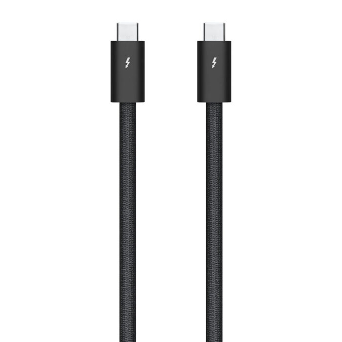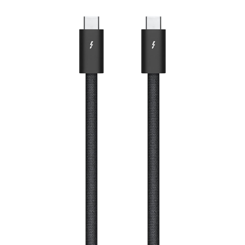 Con un diseño trenzado negro que se enrolla sin enredarse, este cable de 1 metro admite transferencia de datos Thunderbolt 5 de hasta 120 Gb/s;¹ transferencia de datos Thunderbolt 3, Thunderbolt 4 y USB 4 de hasta 80 Gb/s; transferencia de datos USB 3 de hasta 10 Gb/s; salida de video DisplayPort 2.1 y carga de hasta 240 W.
