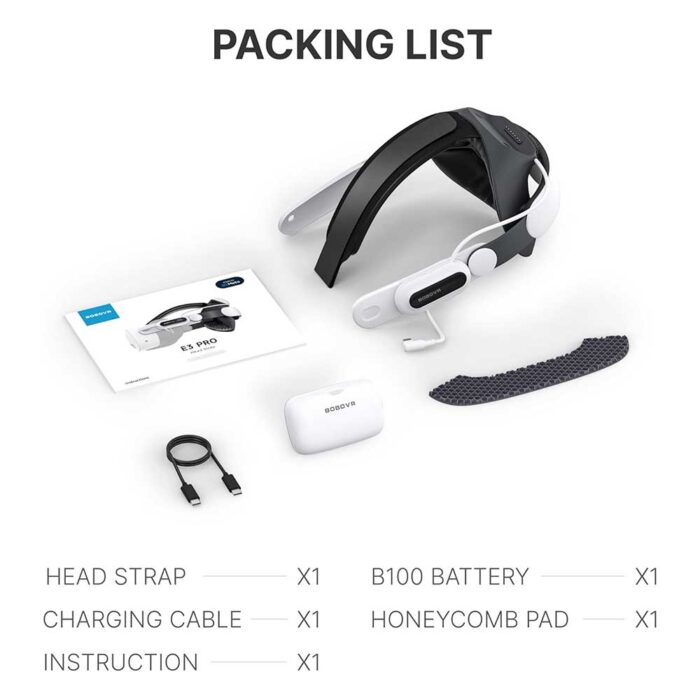 • Diseño Elite para VR activa y uso extendido: cuenta con un diseño ligero y optimizado para sesiones de realidad virtual activas. Integrado con el avanzado sistema de batería B100 de BOBOVR, que ofrece una mejor distribución del peso y un consumo de energía optimizado.