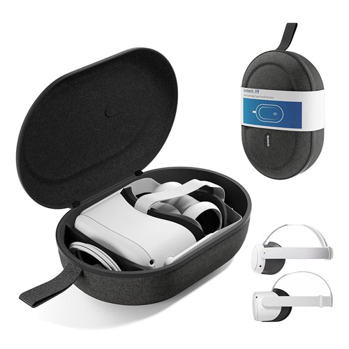 • Espacio suficiente: perfectamente compatible con Meta Quest 3S, Oculus Quest 3/2 Headset y pequeños accesorios como cable de carga, adaptador de corriente (no incluido). (Nota: el tamaño pequeño no es compatible con ninguna correa Elite)